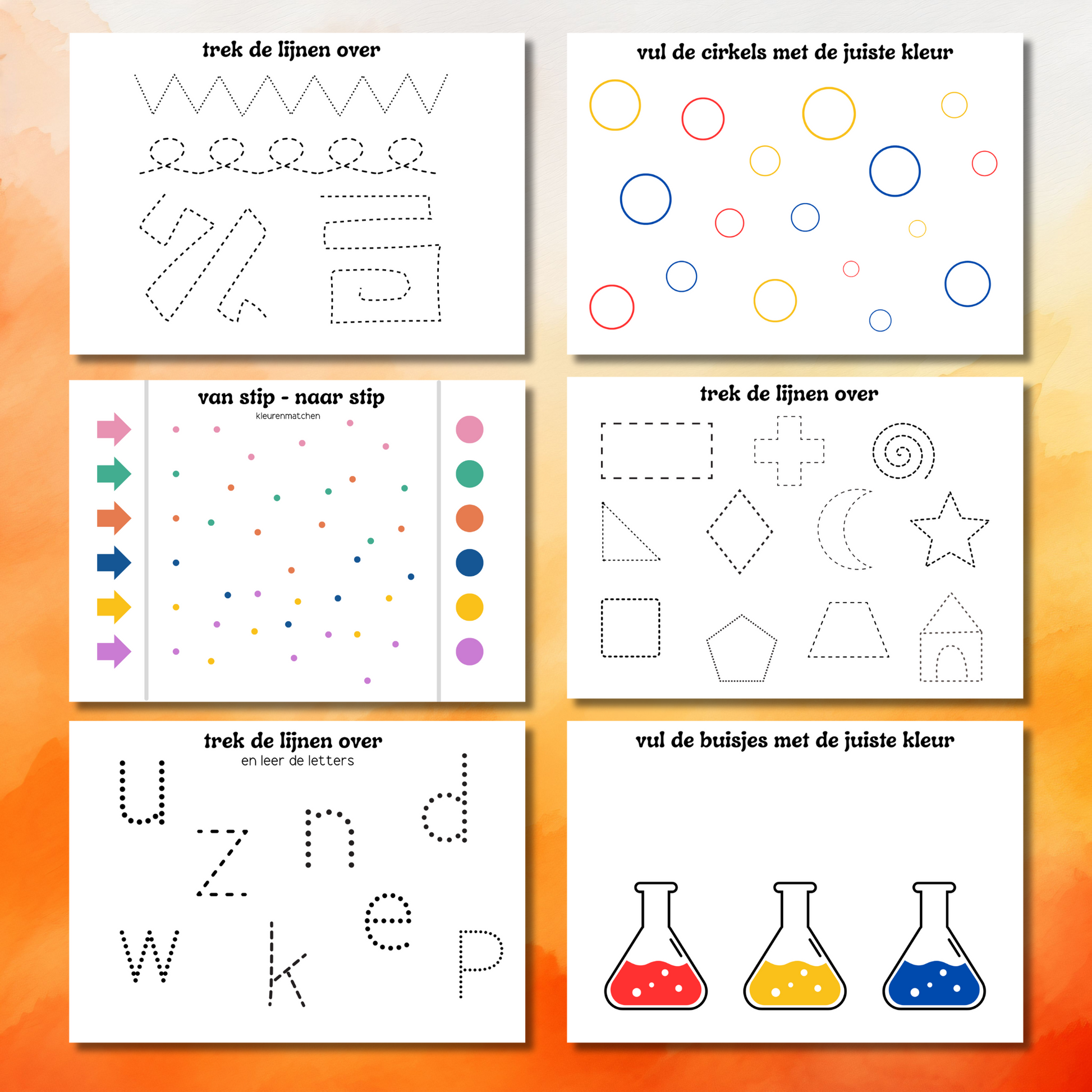 ✨ Stippellijnen overtrekken – oefen fijne motoriek door vormen, lijnen en letters zorgvuldig na te tekenen.