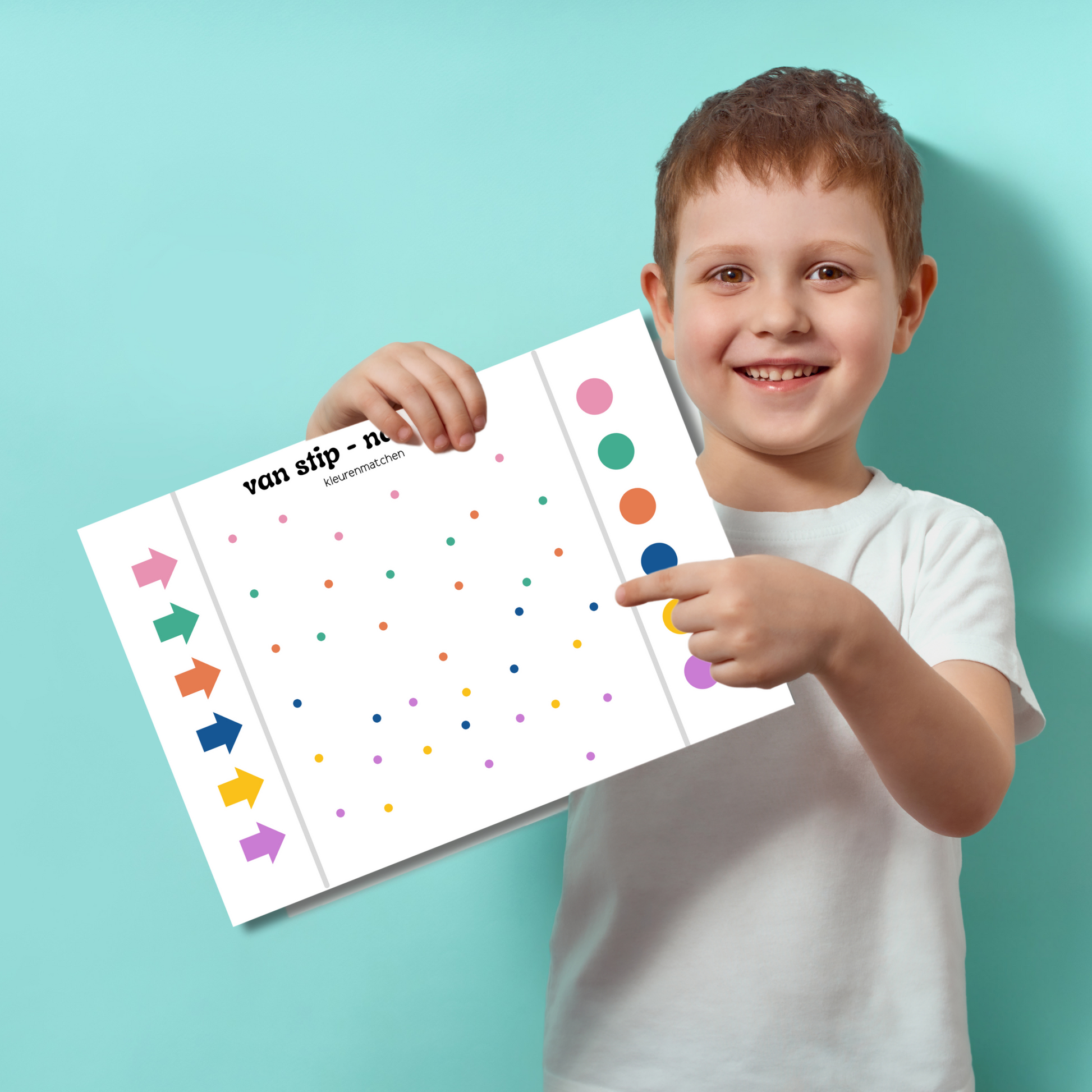 ✨ Van stip tot stop – volg de stippen van één kleur tot de eindstip en train concentratie en kleurherkenning.